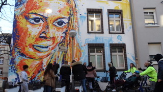 Les photos ont été prises lors de la journée où s’est déroulée mon projet dans le cadre d’un échange transfrontalier. J’ai utilisé l’art comme support d’échanges entre les deux groupes de jeunes (luxembourgeois et français) en faisant un circuit à vélo de la ville autour de l’art urbain : le street-art.