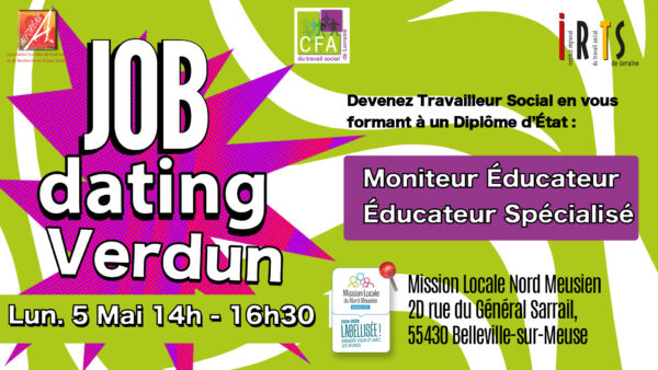 Job Dating du travail social Lundi 05 Mai prochain à partir de 14h à Belleville-sur-Meuse !