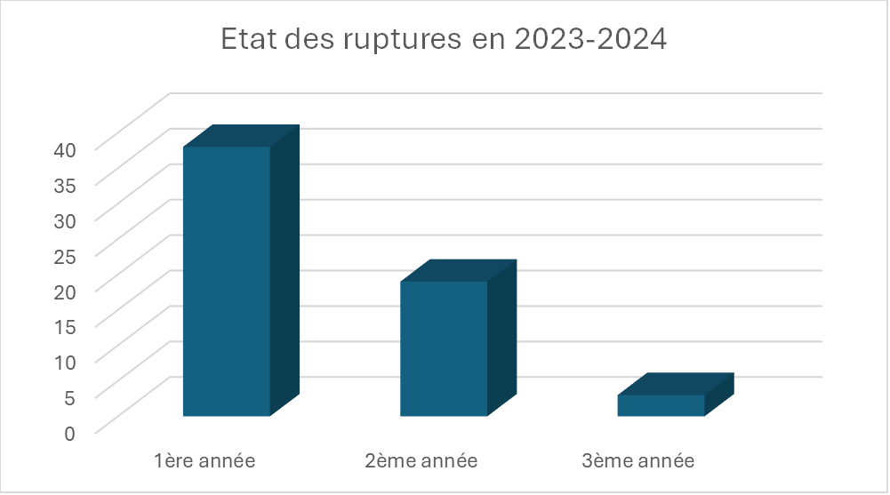NB : 38 ruptures en 1ere année de cursus, 19 en 2e année et 3 en 3ème année